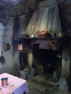 Ma torniamo ai nostri cortili. Risaliamo tra gli stretti vicoli, dove arriviamo alla Curt del Scighera, dove troviamo un locale dove pare che il tempo si sia fermato, con il vecchio camino, stoviglie e oggetti vecchissimi: uno spaccato della civiltà contadina e prealpina locale ! Salutiamo la padrona di casa, una delle figlie del Scighera, che ci offre una deliziosa torta di pane, e voltandoci troviamo una persona che sta eseguendo un lavoro ormai scomparso: la raddrizzatura della lama di un fulcett (piccola falce). Un ceppo di legno in cui è conficcato il "chiodo" di battuta, permette l'appoggio a esso della lama della falce, che viene mossa sapientemente dalle mani del fabbro e che viene picchiettata con un apposito martello, riportando in asse la lama. Sono strumenti che conosco bene, in quanto li possiedo anch'io, ma è uno spettacolo, soprattutto per me che amo questi vecchi lavori, vederli usare con tale maestria...